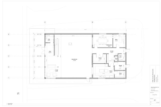 New HQ building for the Polk County North Carolina Democratic Party, to be located on a prominent site facing the Civic Center square in downtown Columbus, NC, the county seat. The organization needs a new up-to-date facility to replace the run-down existing building located on the same site.
